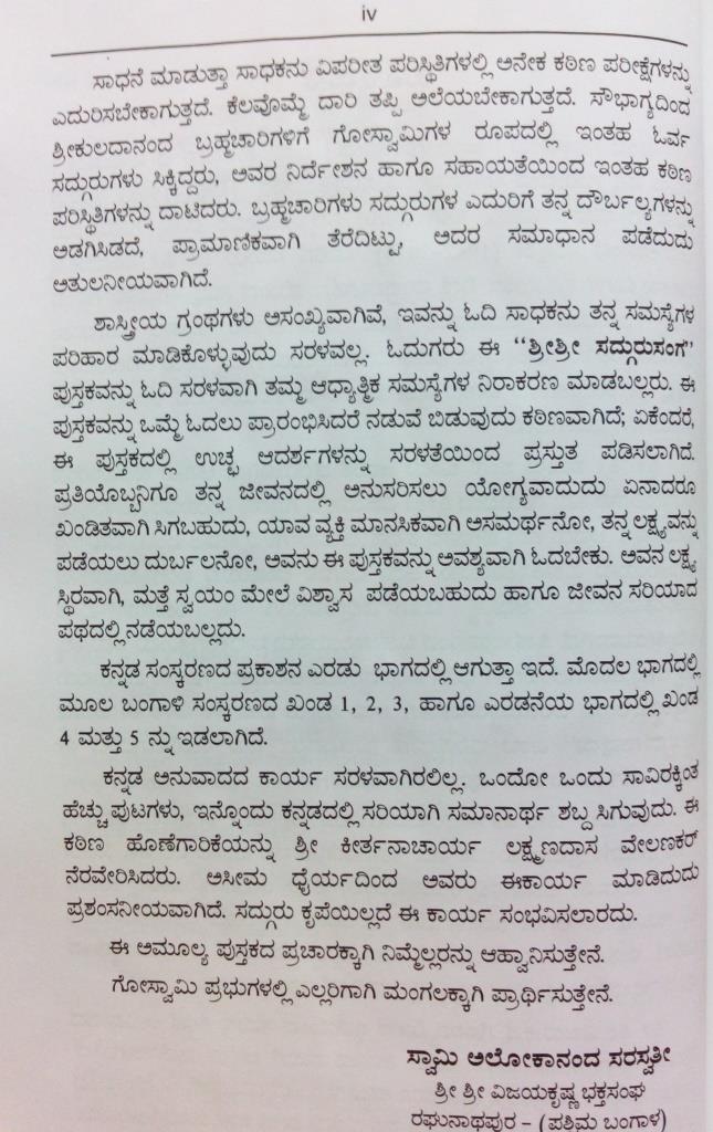 Introduction'Shree Shree Sadguru Sanga', a diary maintained by Shree Kuladananda Brahmachari, one of the most intimate disciples and companion/attendant of Goswami Prabhu is an invaluable collection of priceless gems containing the discourses by Goswamiji and the activities of his and his satisfying answers to the questions of a serious, gritty spiritual aspirant. We are grateful to Shree Kuladanandaji for this outstanding contribution to humanity. The diary was originally written in Bengali. The Hindi, Marathi, Gujarati and English translation of the diary are available and work on Kannada translation is going on.